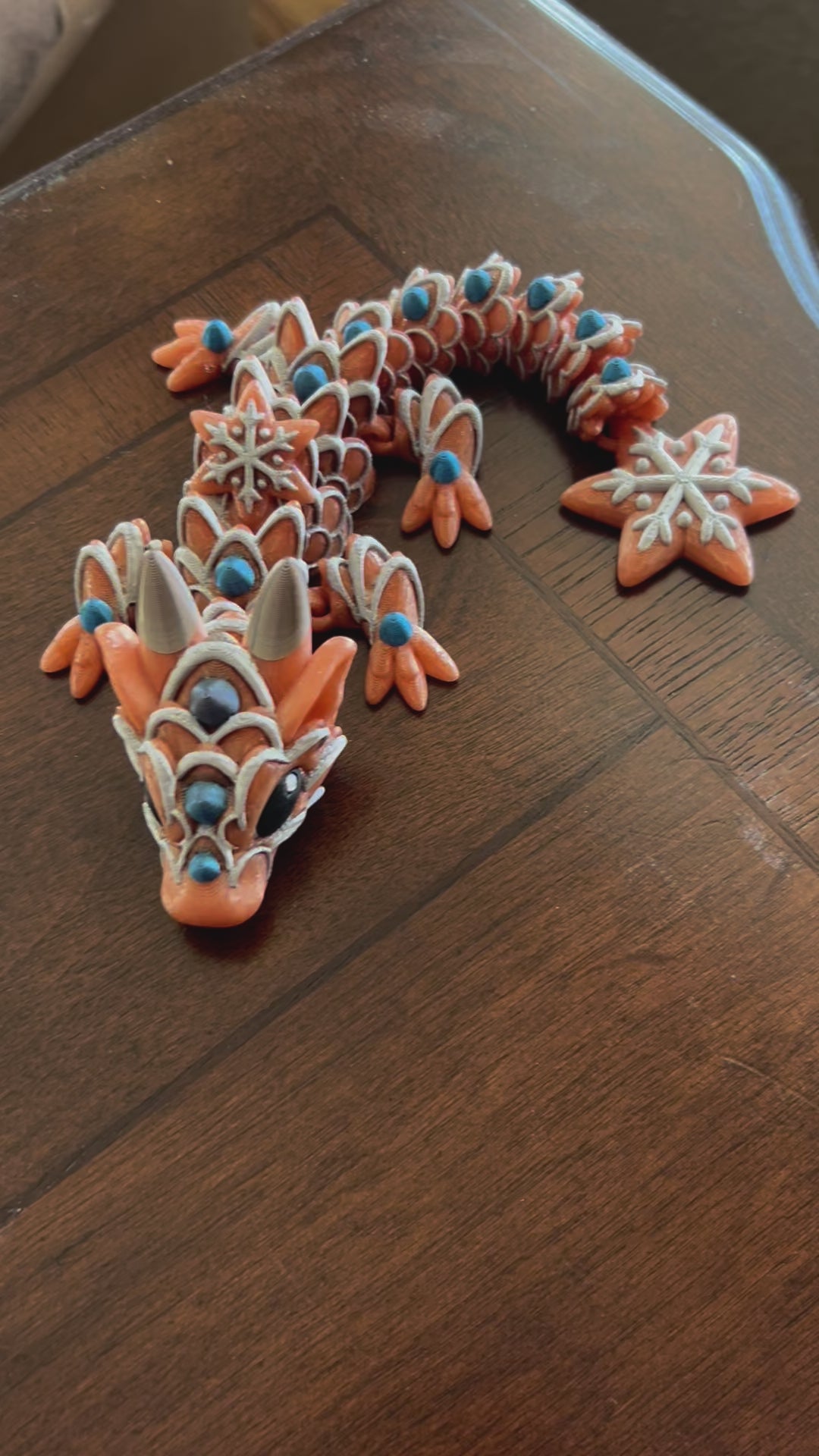 This beautiful bronze dragon has a white border and blue gumdrops all over.