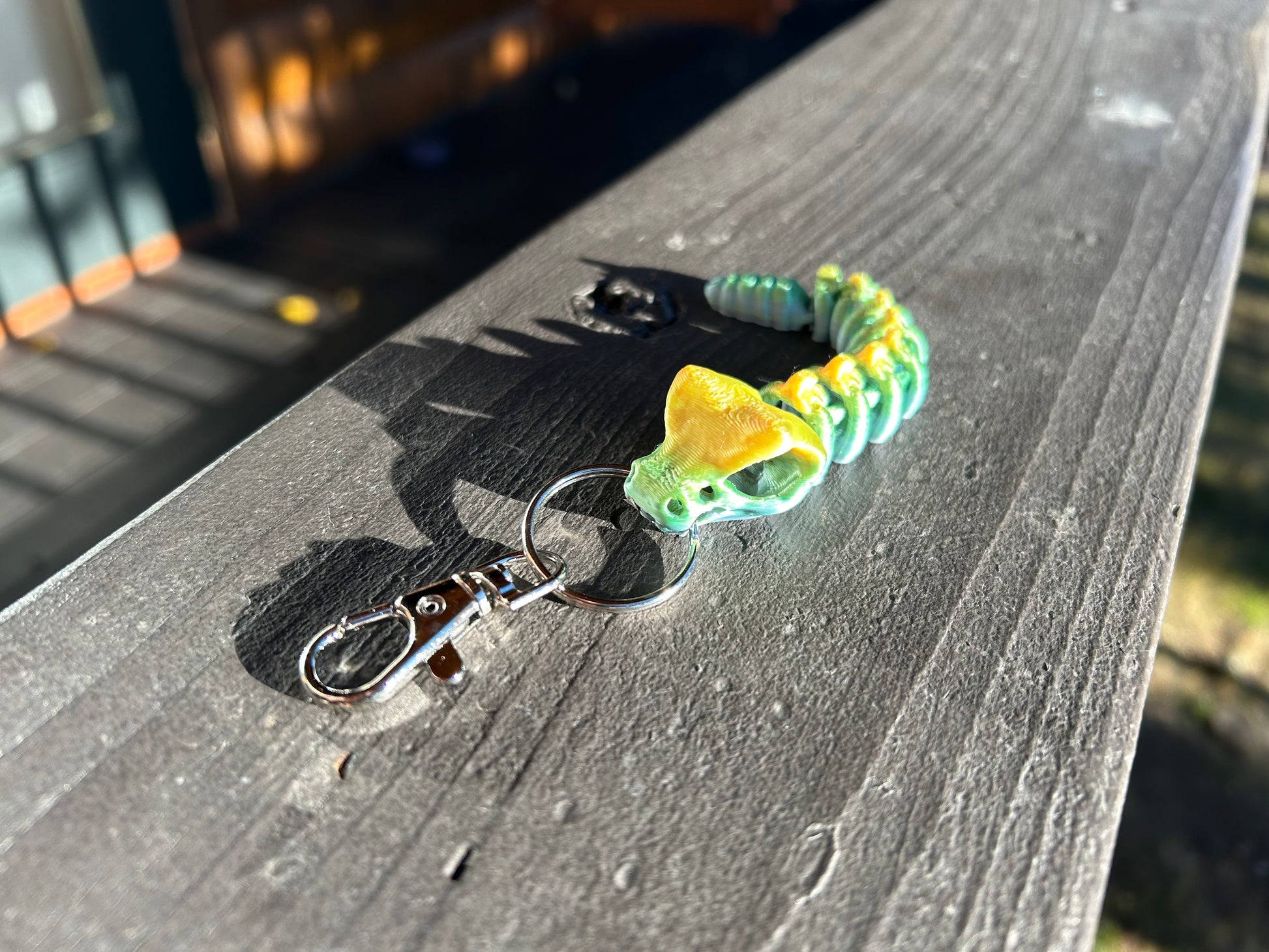 These cute little rattlesnake skeleton keychains make a great toy, fidget and decoration!